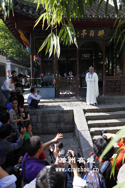 5月11日下午3时许,由市网宣办邀请的二十余位热心网友及媒体记者先后抵达琅琊山北大门,然后统一乘坐旅游观光车赶往醉翁亭景区。特别值得一提的是,一位热心网友竟然穿上古代服饰,扮成欧阳修一同游览。