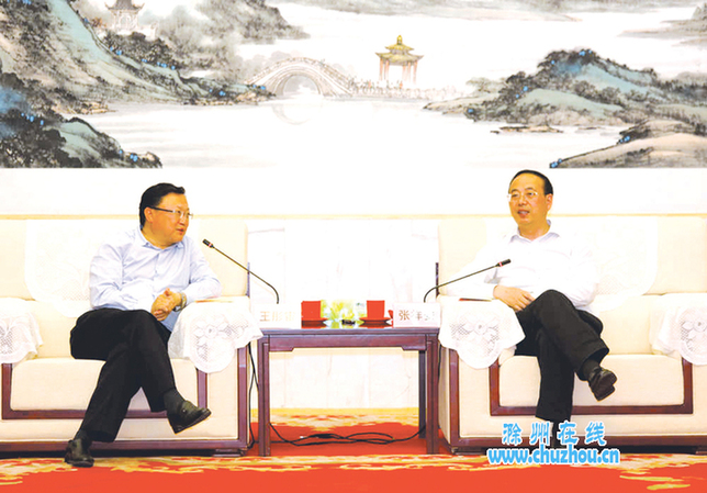 张祥安首先对王彤宙一行到来表示欢迎,并对我市经济社会发展情况进行了介绍。他说,作为国家建设的皖江城市带承接产业转移示范区首站,滁州近年来经济社会保持又好又快发展态势,在省政府年度目标管理考核中始终位居第一方阵。在坚持工业化、信息化、城镇化、农业现代化发展“四化同步”,美好新滁城、美好县(市)城、美好乡村建设“三位一体”的思路下,目前,滁州已经形成家电电子信息、机械汽车和装备制造、盐化工、硅玻璃、农副产品深加工、新能源新材料6大支柱产业,产业集群规模显现,并着力打造家电信息、硅玻璃、盐化工三大千亿元产业基地。