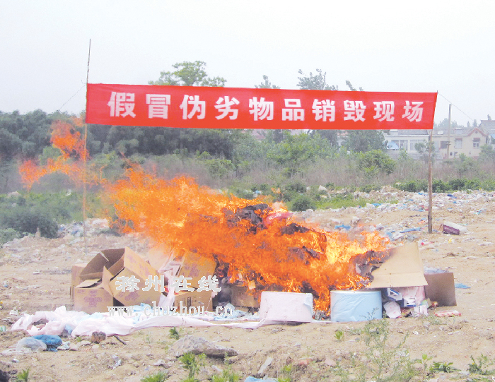 一批假冒伪劣产品付之一炬。