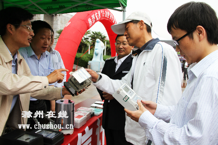 5月18日上午,市质监、供水、供电、供气等多家单位在滁城人民广场拉开了我市“5·20 世界计量日”系列活动的序幕。今年我国世界计量日主题是“计量与生活”。他们通过发放宣传资料等方式,向群众宣传计量知识,接受市民相关咨询,并免费提供血压计、眼镜准确数检测等服务。图为供电部门工作人员在向市民介绍各类电表的使用方法。朱永斌 李为民摄