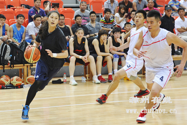 解放军女篮领队、“得分王”刘玉栋、“中国女篮第一美女”隋菲菲……国家级的“大咖”运动员来到滁州,可把滁州的篮球队员和观众们激动坏了。让滁州球迷更为过瘾的是,当天解放军女篮队还与滁州篮球爱好者真刀真枪地交起了手,看得人热血沸腾。
