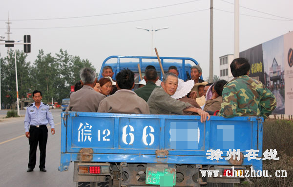 当天下午18时30分左右,S307线25KM高速连接线交叉口附近,一辆号牌为“皖12/66***”的变型拖拉机由西朝东急速驶来。在此执勤的大溪河交警中队民警远远看见,该车后车厢挤满了人,遂示意其停车接受检查。