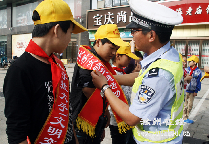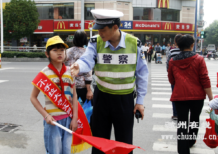 核心提示: 小小文明交通宣传员 “六一”前夕,市交警部门组织开展“平安之行,始于足下”文明交通系列宣传活动。图为28日“小手拉大手”文明交通伴我行活动。