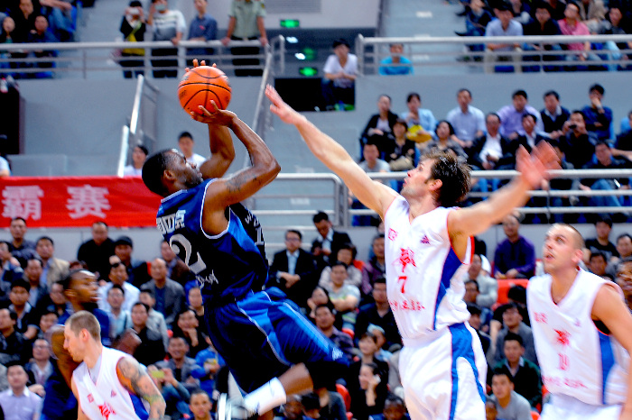 三分线起跳扣篮、空中接力、超远距离三分球、2米以上巨人扎堆……昨晚,欧美职业篮球明星争霸赛在滁州体育馆激情开打,爱沙尼亚岩石职业俱乐部篮球队和美国纽约勇士职业篮球队“龙争虎斗”,精彩不断,看得场下数千名观众大呼“过瘾”。