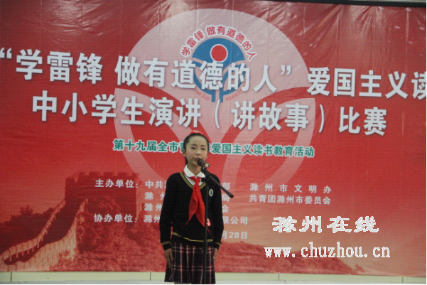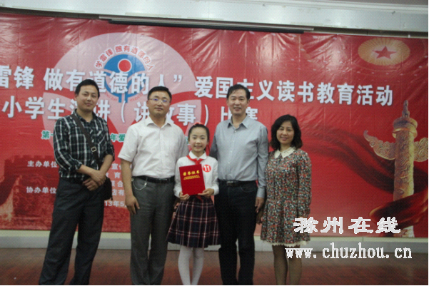 5月28日下午,滁州市第19届爱国主义读书教育活动暨“学雷锋 做有道德的人”中小学学生演讲、讲故事比赛在滁州人大宾馆隆重举行。来自全市各个县、市、区的16名同学参加了小学组的讲故事,滁州一小刘安琪同学经过激烈角逐,终于不负众望,在众多优秀选手中脱颖而出,赢得大赛一等奖。