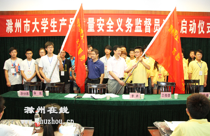 滁州市举行“大学生质量监督员”启动仪式 2013-06-05 08:00 我要评论0 扫描到手持设备 字号: 6月4日上午,我市大学生产品质量安全志愿服务活动启动仪式在滁举行,来自滁州学院、滁州职业技术学院等高校的61名大学生,经过专业培训被聘请为质量安全志愿服务者。活动旨在充分发挥大学生在产品质量安全中的社会监督作用,为广大青年学生在实践中服务社会、锻炼能力、增长才干开辟新途径。图为授旗仪式现场。朱永斌 何 磊摄 微笑 流汗 难过 羡慕 愤怒 流泪 复制网址 打印 收藏 分享到: 0