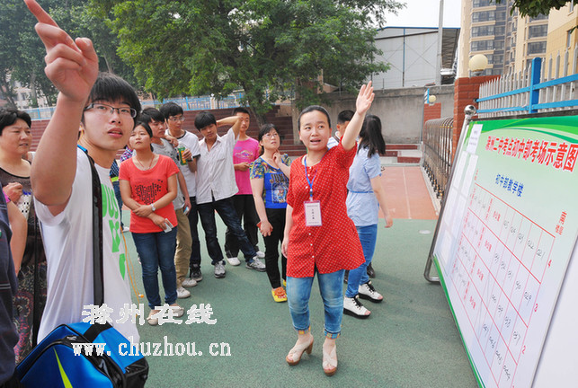 昨天下午,滁州二中考点,工作人员向考生介绍各考场位置。记者 王家国摄