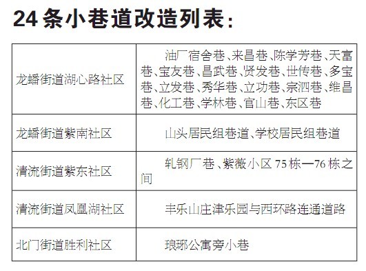 据悉,24条小巷道即将陆续开工,力争9月底前完工,总投资200余万元。
