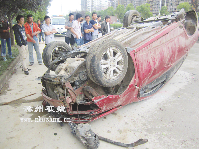 当天中午11时20分左右,滁城世纪大道菱溪苑工地门口,发生一起交通事故。滁州交警三大队民警赶到现场发现,一辆红色雪佛兰轿车肚皮朝天,车辆严重受损,玻璃碎了一地。蹊跷的是,轿车的一只后轮胎不知去向,仔细寻找,才在一堆木材上找到它。