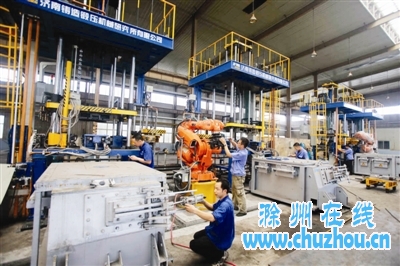 天长市紧紧围绕“完善帮扶机制、拓展帮扶范围、创新帮扶方式、强化帮扶成效、实现帮扶目标”等方面开展帮扶工作,经济运行质量进一步提高。上半年,该市规模工业预计实现产值252亿元,同比增长17.43%;完成工业技术改造投资40.6亿元;百个亿元竣工项目竣工投产12个。图为天长缸盖有限公司技术工人正在安装调试新工艺生产设备。