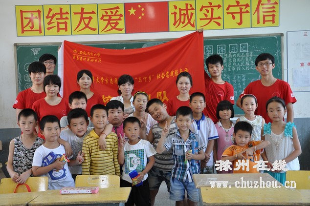 安农大学生来滁州开展暑期社会实践活动 2013-07-15 08:00 郭先见 魏 猛摄 我要评论0 扫描到手持设备 字号: 7月10日上午,安徽农业大学暑期实践团来到南谯区腰铺镇中心小学开展暑期社会实践活动,对小朋友们展开了义务支教活动,通过展板向学生宣传校园安全知识。 微笑 流汗 难过 羡慕 愤怒 流泪 复制网址 打印 收藏 分享到: 0