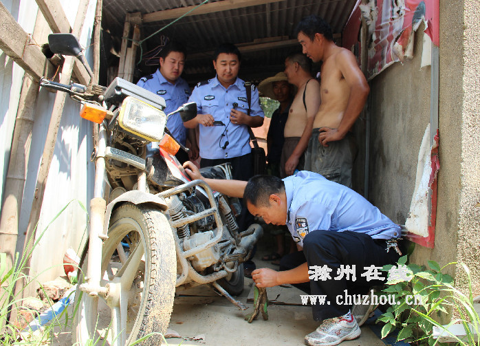 图为民警在检查一辆疑似被盗摩托车。沈 果 摄