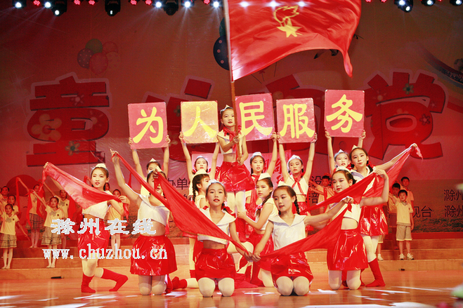 7月15日下午,由市文明委主办,市委宣传部、市文明办等承办的“童心向党”歌咏展演在滁州大剧院精彩上演。展演分火红年代、时代先锋、面向未来和实现梦想四个篇章,来自全市十余所学校的几百名同学用歌舞、合唱、咏诵等节目表达着对党的热爱。图为来安县中心小学的孩子们在表演歌舞《学习雷锋好榜样》。