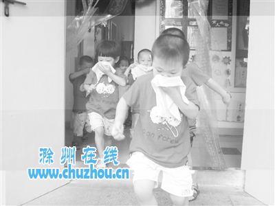 火灾演习中,孩子用湿毛巾捂住口鼻逃离火场。(资料图)