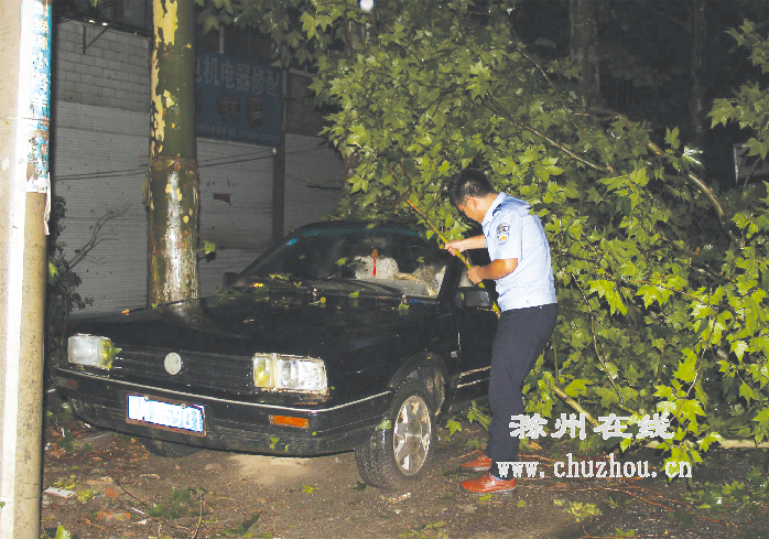 杨桥路是全椒县通往南京的交通要道,被刮断的树木横在路上,挡住了来往车辆的去路,导致道路堵塞。夜间巡逻至此的儒林派出所民警见状紧急冒雨疏导交通,并向指挥中心通报险情,随后协助市政部门移开被折断的树木,抢通了道路。