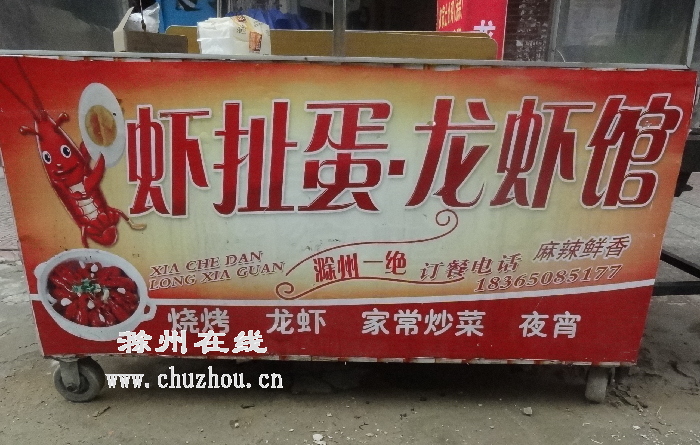 记者通过网站联系上发帖人,并在中都大道上找到了这家饭店,发现原来的“虾扯蛋·龙虾馆”的招牌已经更换为其他名称,只有门外的小推车上还贴着原来的店名。