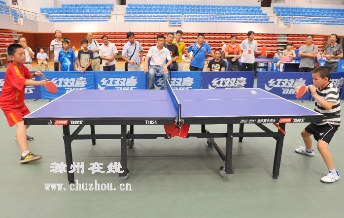 本网讯27日,2013年滁州市中小学生乒乓球赛在市体育馆收拍。经过激烈对决,琅琊区、定远县代表队分别夺得小学组男子团体冠、亚军,定远县、明光市代表队分别夺得小学组女子团体冠、亚军;明光市的杨见治、琅琊区的吴靖棣分别夺得中学组男单和女单冠军。
