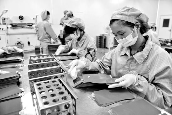 7月25日,工人们正在生产纳米钛酸锂电池的切模。