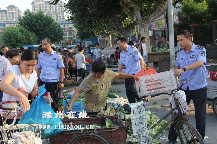 核心提示: 滁州:多次劝导无效 城管依法处罚 近日早上5时许,城管琅琊分局集中40余人的执法队伍,对市民反映的丰乐路占道批兑蔬菜现象进行专项整治。