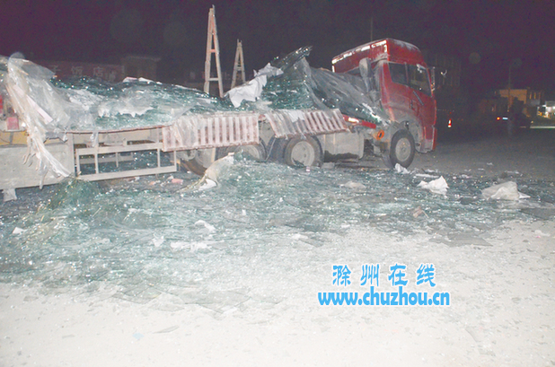 当天深夜23时40分许,怀远县驾驶员梁某驾驶大型货车,满载38吨玻璃由蚌埠赶往南京送货。沿104国道行至明光市桥头镇境内990K+800M处时,为避让对面一辆占道超车的小车,梁某情急紧急刹车。不料,伴随着稀里哗啦一阵脆响,车厢内装载的玻璃被挤压得粉碎。