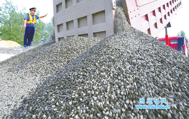 图为执法人员正将查处的超限砂石进行卸载。记者王家国/摄通讯员张健/文