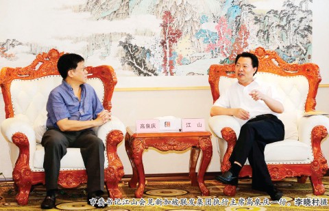 本网讯(记者施璇)8月5日,市委书记江山在滁亲切会见了新加坡联发集团执行主席高泉庆一行,双方就来滁考察投资事宜进行洽谈。副市长汪建中、苏滁现代产业园管委会主任邢高等会见时在座。