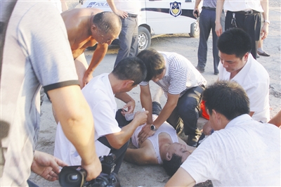 接到报警电话后,红山头检查站立即出动海巡艇赶往事发地。据执行救援任务的海事执法人员介绍,他们到达现场时,渡船已经底部朝天,水上漂着一层厚厚的小麦粒。由于渡口附近水深十余米,落水车辆无救援设备,无法立即打捞。当得知渡船驾驶员杨云鹏(泗洪县泗河乡人,泗洪渡069的合伙股东之一)仍被困在水下时,红山头检查站立即组织熟悉水性的当地群众下水施救,同时疏导临近水边的围观群众,防止造成次生伤害。
