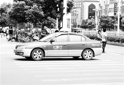 镜头三:7月17日12时04分,滁城城区新华书店路口,一辆出租车在斑马线上停车。