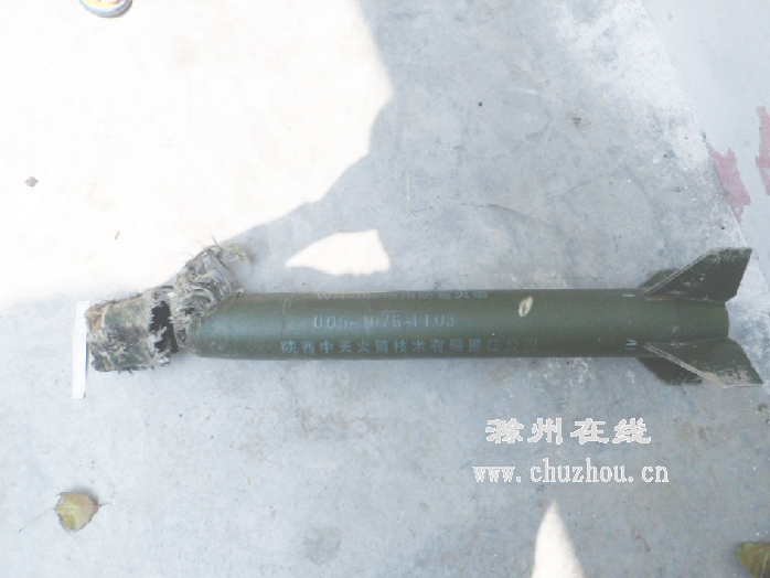 来安县公安局闻讯,火速安排民警赶到现场调查。民警从残留物体形状分析,判断可能是增雨火箭弹。根据上面的产地和编号,民警立即与江苏省南京市六合区气象部门联系。