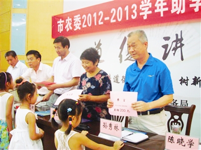8月21日上午,明光市农委系统召开2012年至2013年助学奖优大会,94名大中小学生受到奖励和帮扶。袁松树 张子国 丁兆启摄