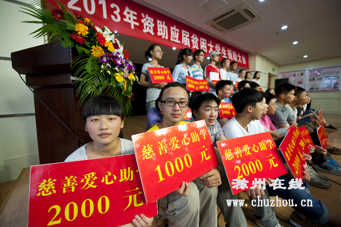 核心提示: 滁州:贫困大学新生获资助 8月24日,资助贫困大学新生捐助大会在滁举行。112名大学新生分别收到募集的现金1000元至5000元不等。