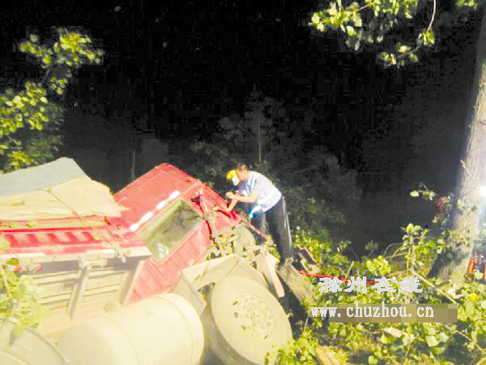 事发当日凌晨1时50分许,铜城镇往马坝路约4公里处,一辆“皖L20***/皖LB7**挂”货车失控,侧翻入道路东侧路基下水沟内。天长交警四中队民警闻讯赶到,发现货物散落满地,驾驶室严重变形,里面传出一阵阵痛苦的呻吟声。