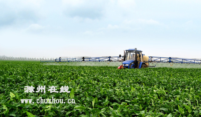 8月22日上午,明光潘村湖农场方付建家庭农场正在进行机械化药剂喷施作业。眼下正是大豆结荚鼓粒期,也是防治大豆食心虫的最佳时机。连日来,农场共投入60多台大马力拖拉机配置高压喷雾系统,集中进行机械化药剂喷施作业。目前,该场已对3.2万亩大豆进行了一次食心虫防治。