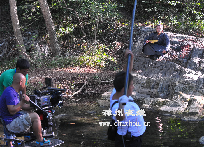 此后,剧务人员开始忙碌起来,在林间小径搭帐篷、摆设备,在小溪中架设拍摄器材……而刘长纯、刘大刚等有戏分的演员则在导演的现场指挥下,按照剧中场景开始彩排。下午4时许,《醉翁亭记》首个外景戏正式开拍。截至昨天下午,《醉翁亭记》摄制组仍在琅琊山内拍摄剧中的各类场景戏。