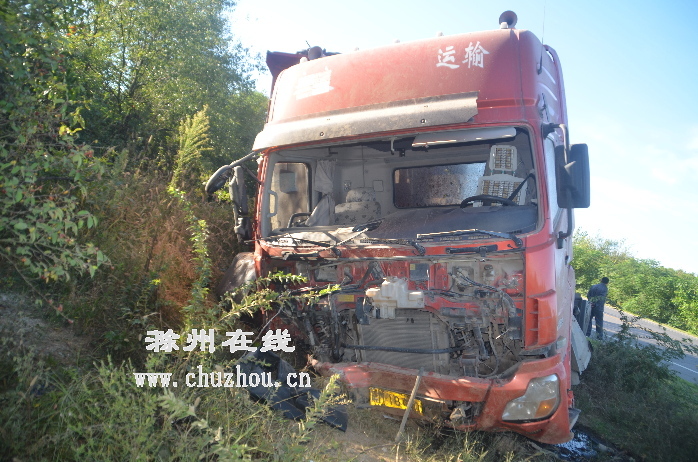 当天清晨,滁州市人郭某,驾驶一辆号牌为“皖M18***”的重型半挂牵引车,准备去明光拉货。6时12分许,车辆由南向北行驶到104国道管店镇罗岭村路段时,郭某发现一辆出租车突然迎面出现在眼前。情况岌岌可危,郭某为避让出租车,不得不紧急刹车,并将方向向右急打。然而,由于两车速度均较快,双方还是发生碰撞。大货车失控冲下路面,撞到路边山体后才停下。