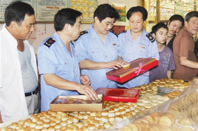 9月16日,天长市工商执法人员对月饼市场进行突击检查。中秋佳节临近,天长市工商局城乡联动,重点查处“三无”月饼、虚假宣传、过度包装月饼,并对问题月饼一律没收销毁,确保消费者吃上放心月饼。李炳旺 张正西 摄