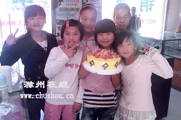 今年4月杨敏(前排中)与伙伴一起过生日。(资料图)