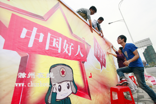 滁州:好人长廊为民树榜样 2013-09-27 16:57 我要评论0 扫描到手持设备 字号: 九月二十五日,在滁城同乐西路,工人们在张贴宣传画。为弘扬助人为乐、孝老爱亲、诚实守信、见义勇为等美德,市文明办在同乐西路围墙上张贴长达300多米的[滁州市好人长廊],集中展示获得[中国好人]称号的37位滁州人的先进事迹。卢志永摄 微笑 流汗 难过 羡慕 愤怒 流泪 相关阅读 关键词: 滁州 好人 榜样 【安徽日报】滁州自我“亮剑”强化党委主体责任2015-04-09 2015年三月滁州好人2015-04-09 男子酒后疲乏难耐 高速公路呼呼大睡2015-04-09 滁州:高中生患重病 多方援手渡难关2015-04-09 天长一花甲老人志愿捐角膜2015-04-09 滁州经开区首季实现主要指标增长2015-04-09 滁州:公园木栈桥护栏破损成隐患2015-04-09 滁州:花开亭城 美不胜收2015-04-09 滁州:装修垃圾“任性”倒,最高挨罚5万元2015-04-09 滁州:红色休闲游撑起行业“半边天”2015-04-09 责任编辑:方婷婷 复制网址 打印 收藏 分享到: 0