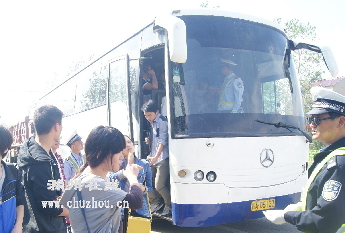 当天上午,定远县交警范岗中队民警,在辖区S101线88KM范岗段设立检查点,对过往车辆进行检查。11时许,一辆“皖A05***”大型普通客车,由南向北缓缓驶来,车内驾驶人和部分乘客畏畏缩缩,十分可疑。民警见状,将该车拦下。