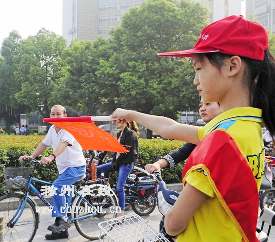 滁州日报社小记者在清流路南谯北路交叉口手持小红旗维持交通秩序。(资料图)记者计成军 摄