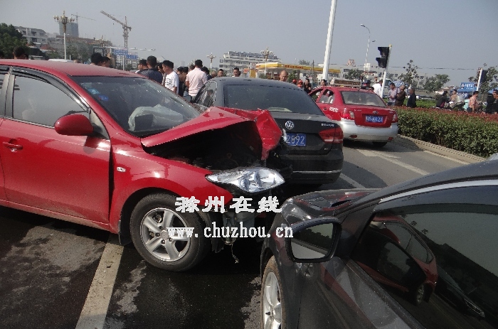 日前,滁城南谯路与凤阳路交叉路口,发生一起五车相撞的交通事故。记者日前从滁州市交警二大队获悉,肇事司机醉酒驾车,行至路口错把油门当成了刹车,导致连续撞到四辆轿车,也让自己受伤住院。