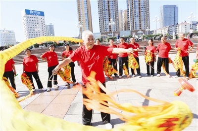 10月26日,老人们在人民广场晨练抖空竹,比技艺。近年来,我市充分发挥离退休老干部、老党员的组织作用,组建了各类文体活动团队,倡导社区居民积极开展健康有益的娱乐活动。“兴趣爱好有队伍,文化活动有去处,健身健美有设施,关心关爱有组织”的社区文化时尚已蔚然成风。李晓村 摄