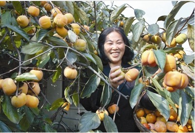 10月22日,天长市汊涧镇农民在喜摘成熟的柿子。近几年,天长市大力引导、扶持高岗地区农民发展特色经果林,目前,农民利用房前屋后、岗坡种植柿子、葡萄、水蜜桃、银杏等经果林2万余亩。这种既不占用耕地,又增加收入的庭院经济给当地农民带来了实惠。