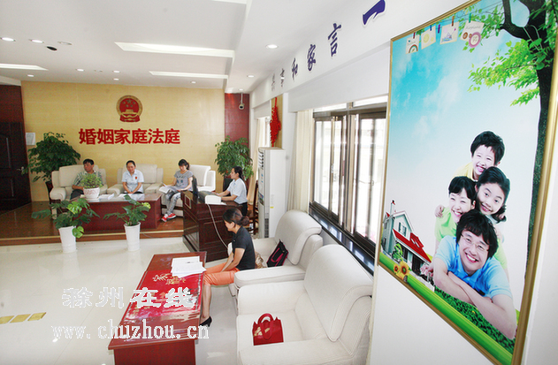 将传统的原被告席和审判台改为沙发和茶几,抬眼可见“家和万事兴”的宣传画和标语……琅琊区法院为促进当事人矛盾化解,在婚姻家庭法庭中对森严的审判庭进行家庭式布置,营造宽松环境,改善对立情绪。这是琅琊区法院于1999年在全国率先成立首个婚姻家庭案件业务庭以来的又一创新举措。通过多项针对婚姻家庭案件的司法应对措施,该庭每年的婚姻家庭案件调撤率都达到80%以上。图为审判庭内部布置。蒋海潮文 卢志永摄