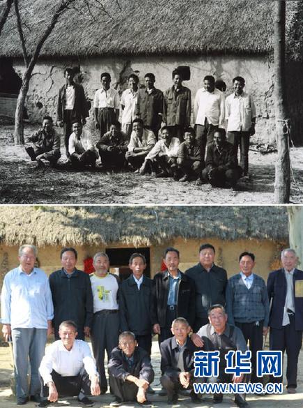 上:1981年,18名在家庭联产承包责任制契约上按下手印的小岗村村民中的14位在村内茅草屋前合影。下:2011年初秋,小岗村在世的12位当年农业“大包干”带头人,再次在被作为文物保留的茅草屋前合影(拼版照片)。 1981年,安徽滁州凤阳县小岗村的18名农民在家庭联产承包责任制契约上按下手印,揭开了中国农村改革的序幕。 新华社发