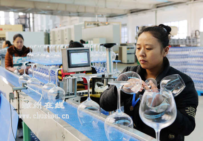 11月15日,南谯区工业开发区引进生产高档玻璃制品,总投资5.58亿元的意德丽塔(滁州)水晶玻璃企业生产车间一角。