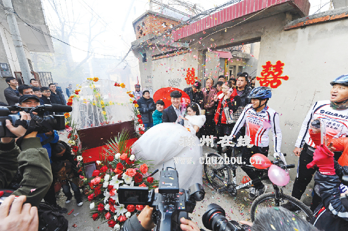 结婚是人生中最重要的一刻,很多年轻人都会选择用名车迎娶新娘,让自己的婚礼“高端大气上档次”。而上周五,凤阳县一家物流公司的老总、29岁的新郎钱增却“反弹琵琶”,采用单车迎亲。这一简朴而又新颖的方式,吸引蚌埠、淮南、滁州三地的160多名骑友前来助阵,长达200米的自行车迎亲队夺人眼球,沿途居民纷纷驻足观赏,盛赞这是他们见过的“最美婚礼”。