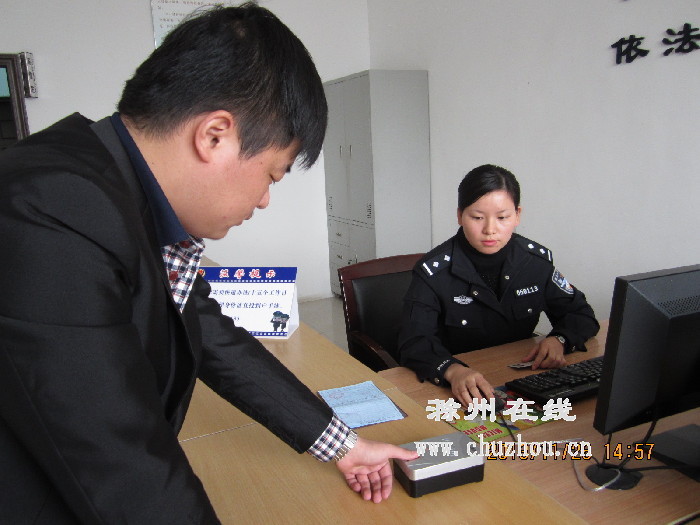 昨天下午3时许,滁州经开区居民杨先生走进辖区文峰路派出所,提出换领二代身份证。被告知需要采集指纹时,杨先生十分惊讶。在户籍民警李厚媛的引导下,杨先生右手大拇指按在指纹采集仪器三次,左手大拇指同样按了三次。与此同时,电脑语音提示具体步骤,显示屏上根据采集指纹质量自动打分,杨先生右手“87、86、87”,左手“85、87、87”。整个采集过程,不到30秒。