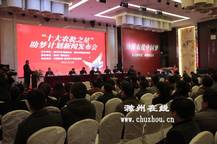 11月28日下午,“十大农批之星”助梦计划新闻发布会在金鹏酒店举行。本次活动由滁州市农委和滁州市琅琊区政府主办、中国供销·滁州农产品物流园协办。滁州市相关部门负责人和中国供销·滁州农产品物流园总经理林振群、营销总监张绍海以及来自全国的20多家知名媒体来到现场。
