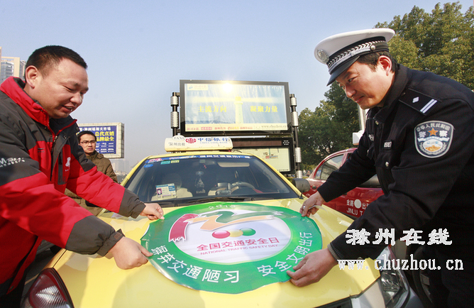 12月2日是“全国交通安全日”,当日我市交警部门在滁城人民广场举行了主题为“摒弃交通陋习,安全文明出行”的宣传活动。活动通过向市民宣讲文明交通规则、新晋驾驶员宣誓、爱心车队绕城宣传等形式,在社会营造良好的文明交通风气,有效地增强了驾驶人和交通参与者的文明交通意识,形成了全民关注交通安全,人人维护交通环境的浓厚氛围。图为:交警人员和出租车驾驶员一起张贴文明交通宣传画。